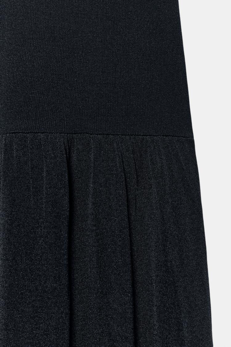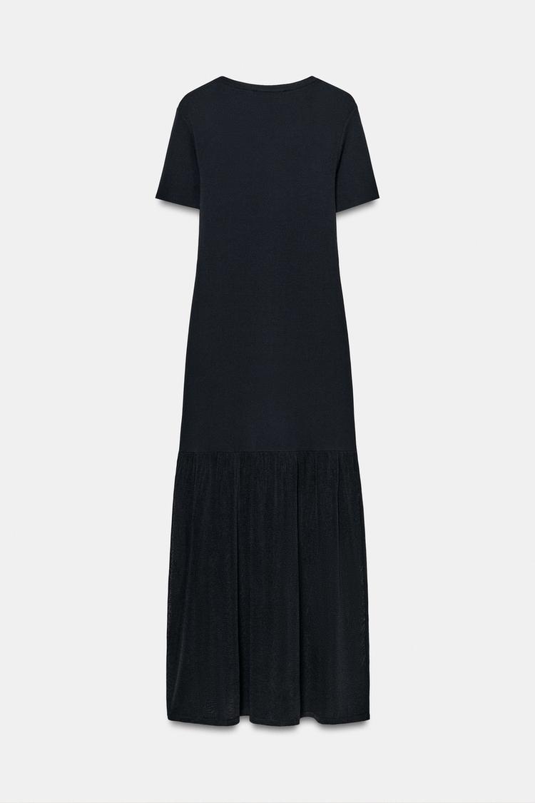 فستان بياقة دائرية وأكمام قصيرة. حافة سفلية بنسيج ممزوج شبه شفاف.
