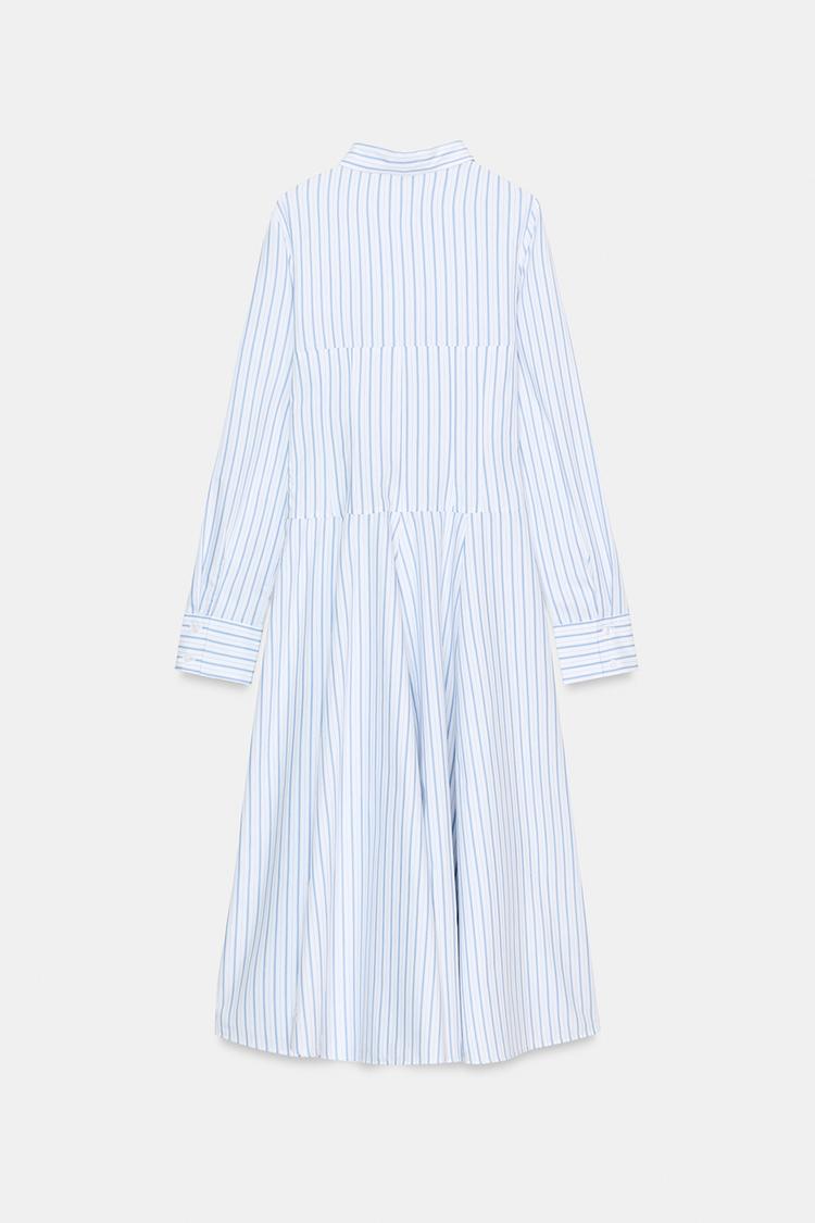 فستان ميدي بياقة مطوية. أكمام طويلة منتهية بسوار معصم مع طيّة. إغلاق أمامي بأزرار.